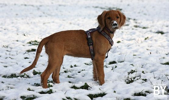 An american retriever arrives at her new home.